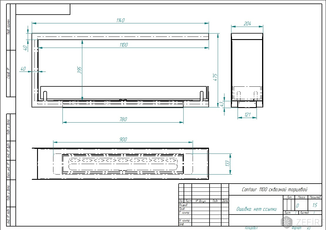 Биокамин Contour торцевой сквозной 1100 (Estetic Flame)