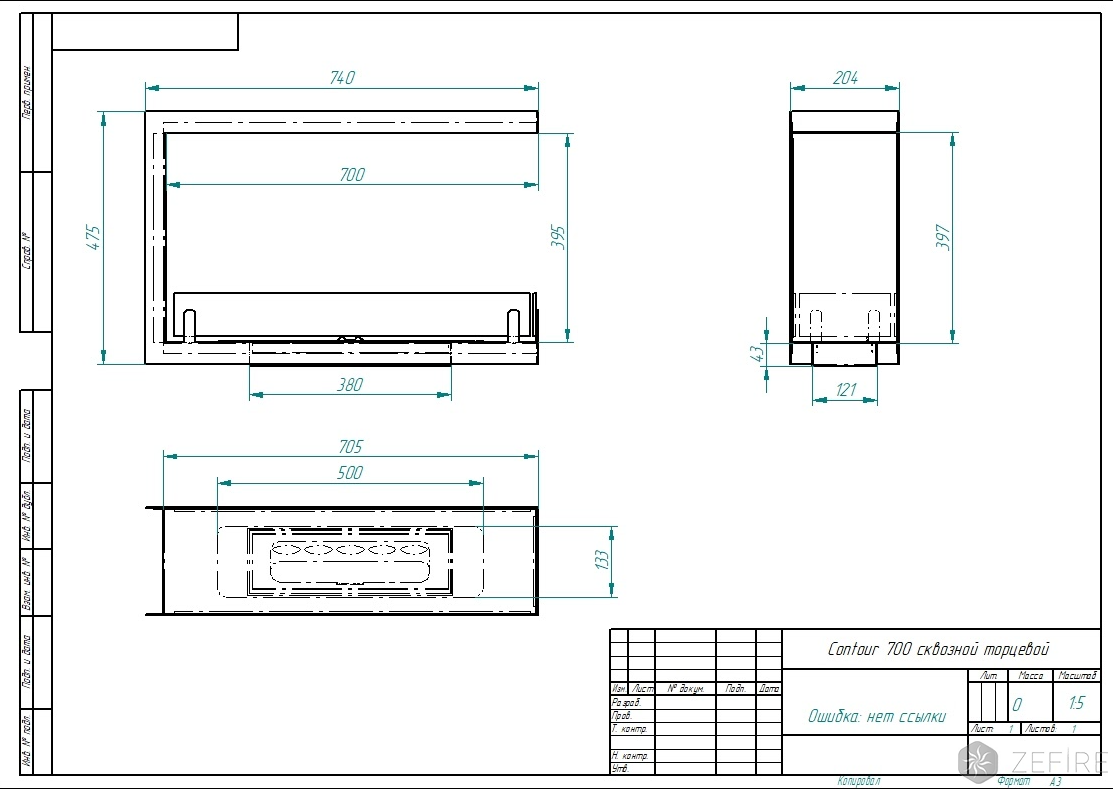 Биокамин Contour торцевой сквозной 700 (Estetic Flame)