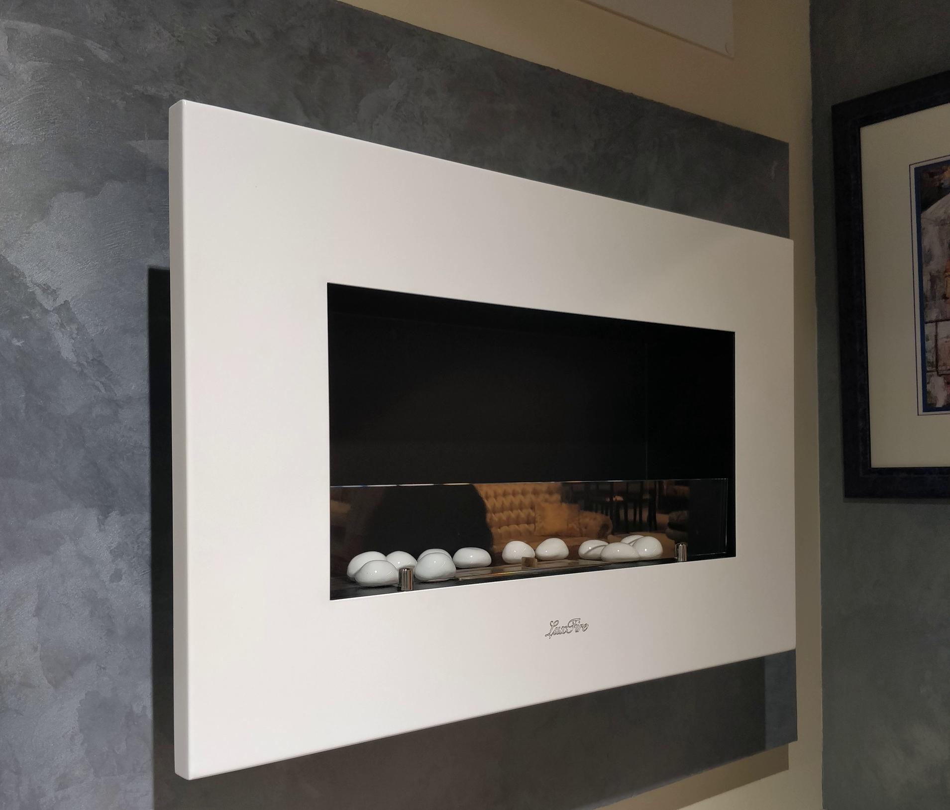 Представляет собой цельную металлическую конструкцию белого цвета класса XS, создающую полузакрытое безопасное пространство для огня с топливным блоком Lux Fire 250 XS ограниченную закаленным стеклом в котором горит живой огонь с углом обзора 180 градусов. Универсально подходит для встройки в нишу или подвеса на стену.