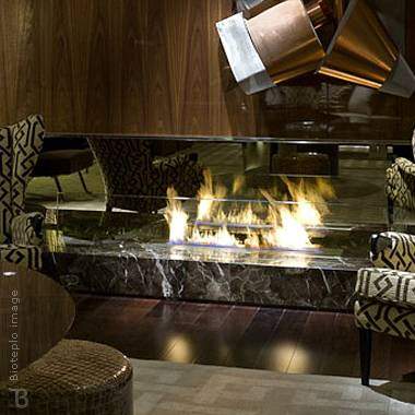 Очаг – это емкость куда заливается жидкое топливо. Емкость внутри заполняется керамическим материалом, который впитывает биотопливо, и в случае опрокидывания камина топливо не разливается. За счет этого конструкция стала полностью пожаробезопасной. Очаг встраивается в корпус из стали, который окрашивается специальной термостойкой краской, или же в заранее подготовленную нишу, изготовленную из негорючих материалов.