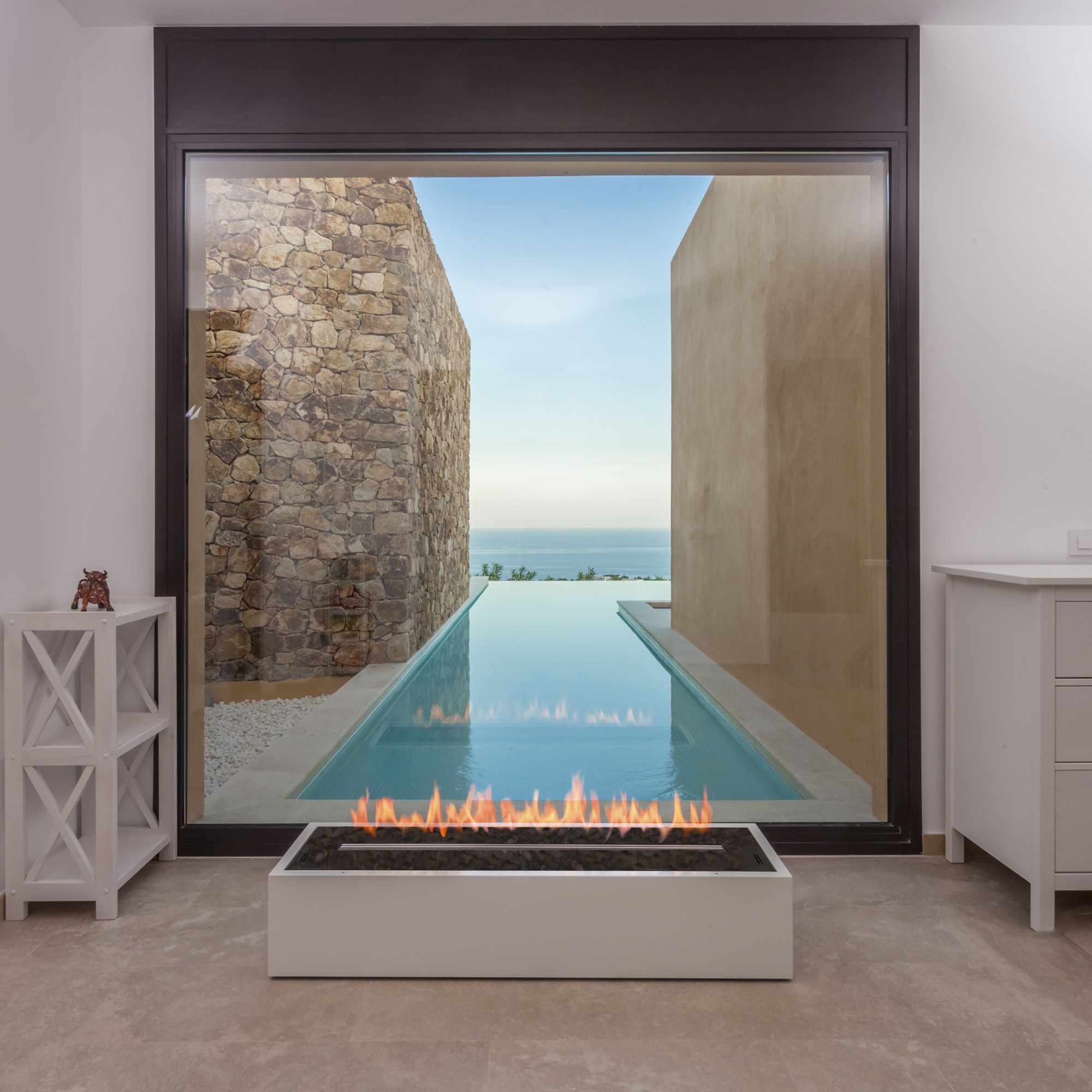 - Индикация уровня топлива и высоты пламени, отображаемая на дисплее управления биокамином или на смартфоне.