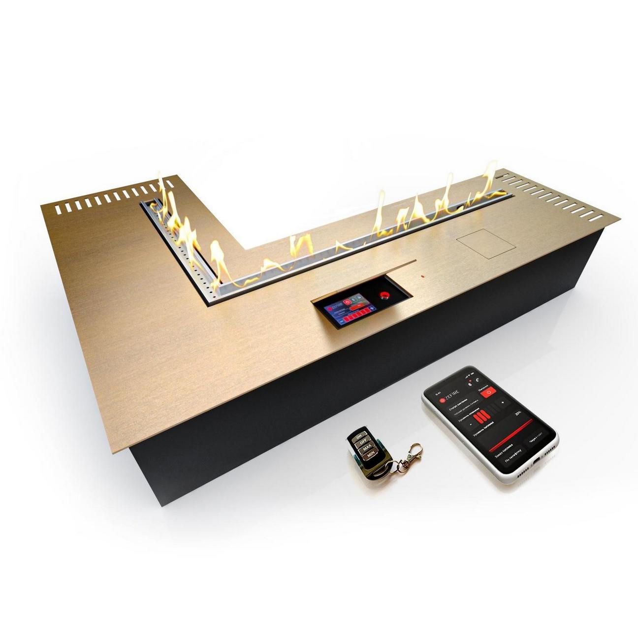 Автоматический биокамин ZeFire M 1000х1400 угловой латунный с ду