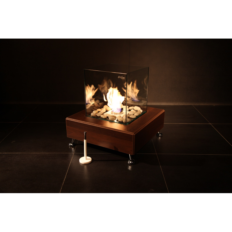 Очаг – это емкость куда заливается жидкое топливо. Емкость внутри заполняется керамическим материалом, который впитывает биотопливо, и в случае опрокидывания камина топливо не разливается. За счет этого конструкция стала полностью пожаробезопасной. Очаг встраивается в корпус из стали, который окрашивается специальной термостойкой краской, или же в заранее подготовленную нишу, изготовленную из негорючих материалов.