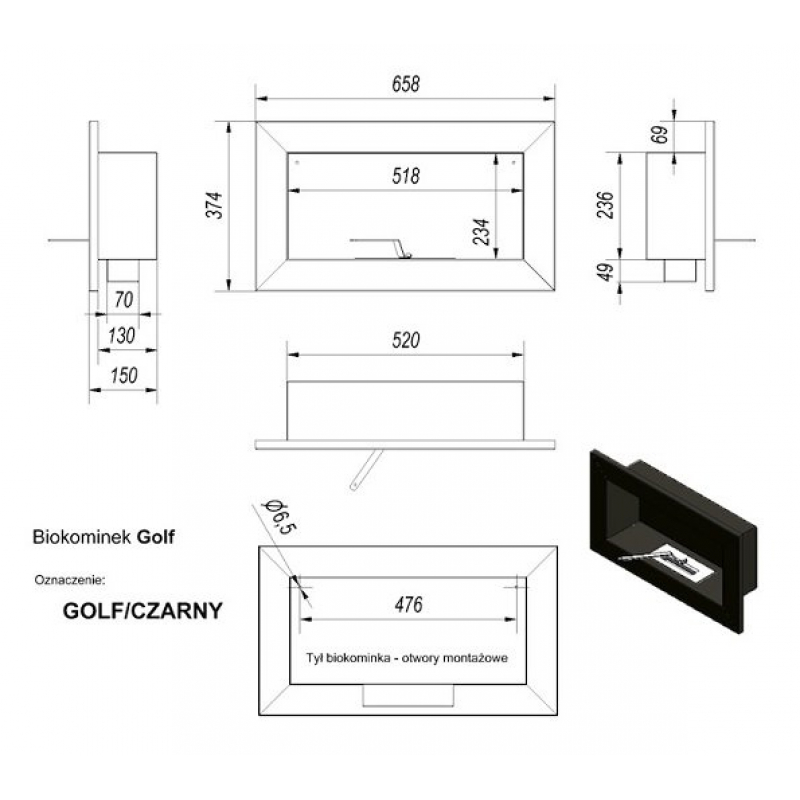 Биокамин Kratki GOLF HORIZONTAL, TUV