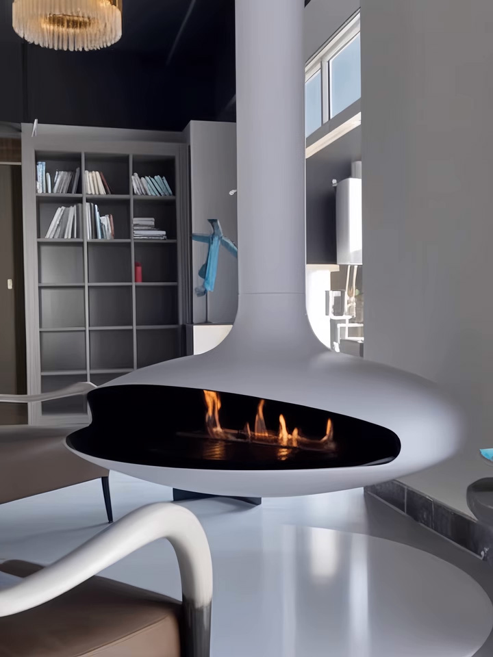Подвесной камин из стали выполнен в классическом черном цвете. Благодаря уникальной топке, вращающейся на 360 градусов, вы сможете наслаждаться игрой пламени из любой точки помещения. Стальная конструкция отлично выдерживает высокие температуры, не деформируясь и не образуя трещин.Для финишного покрытия используется профессиональная термостойкая антикоррозионная краска. Это покрытие выдерживает нагрев до +1200 °C.