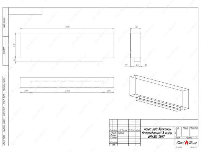 Встраиваемый Биокамин SteelHeat GRAND-D 1800 предназначен для встраивания в глухие ниши из гипсокартона, кирпича, пеноблоков, бетона.