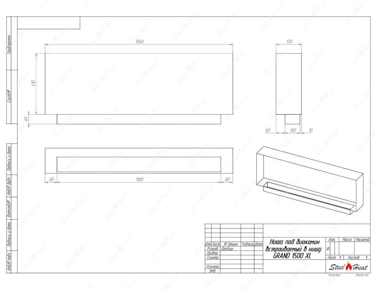 Встраиваемый Биокамин SteelHeat GRAND-V 1500 XL предназначен для встраивания в глухие ниши из гипсокартона, кирпича, пеноблоков, бетона.