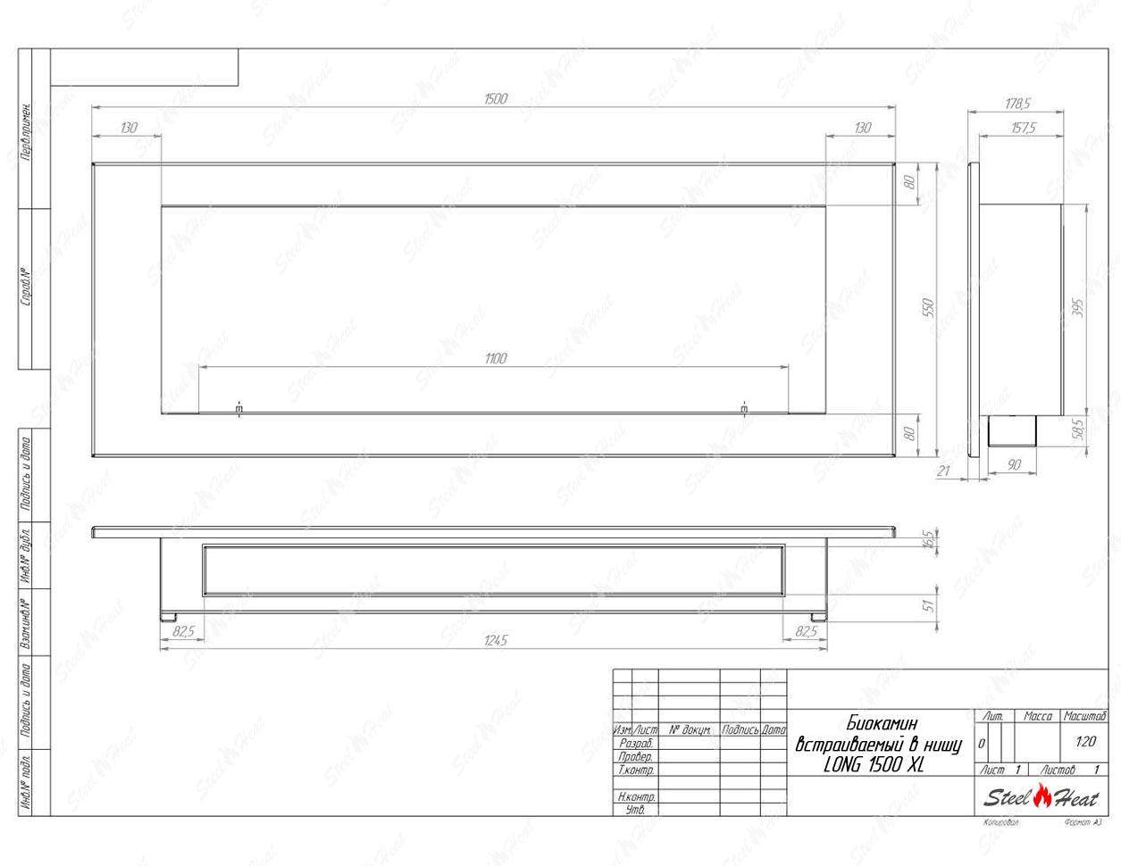 Встраиваемый Биокамин SteelHeat LONG-H 1500 XL предназначен для встраивания в глухие ниши из гипсокартона, кирпича, пеноблоков, бетона.