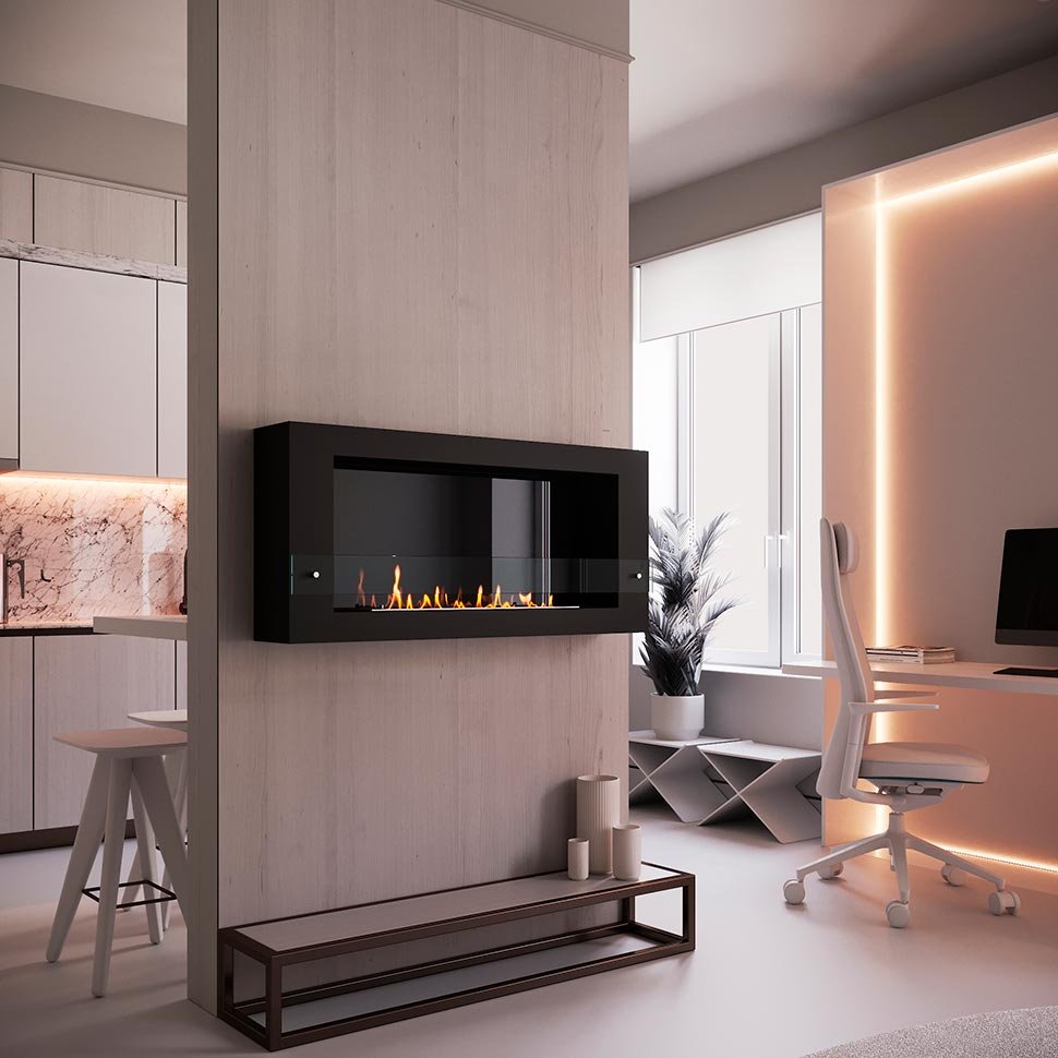 Биокамин SteelHeat WALL LONG 1200 черный, стекло