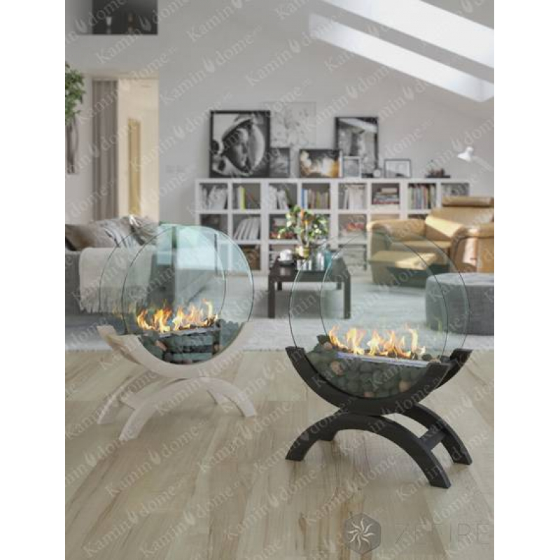 Очаг – это емкость куда заливается жидкое топливо. Емкость внутри заполняется керамическим материалом, который впитывает биотопливо, и в случае опрокидывания камина топливо не разливается. За счет этого конструкция стала полностью пожаробезопасной. Очаг встраивается в корпус из стали, который окрашивается специальной термостойкой краской, или же в заранее подготовленную нишу, изготовленную из негорючих материалов.