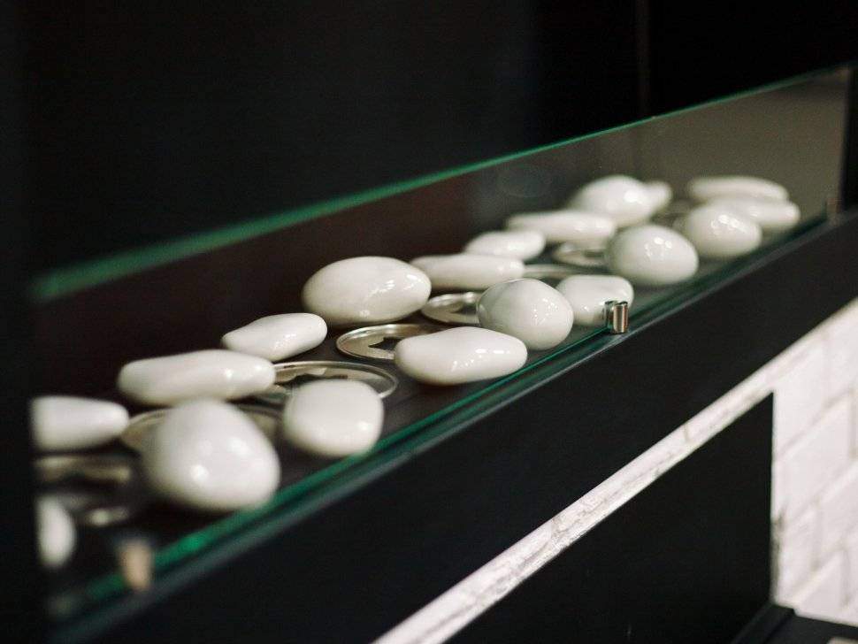 Очаг – это емкость куда заливается жидкое топливо. Емкость внутри заполняется керамическим материалом, который впитывает биотопливо, и в случае опрокидывания камина топливо не разливается. За счет этого конструкция стала полностью пожаробезопасной. Очаг встраивается в корпус из стали, который окрашивается специальной термостойкой краской, или же в заранее подготовленную нишу, изготовленную из негорючих материалов.