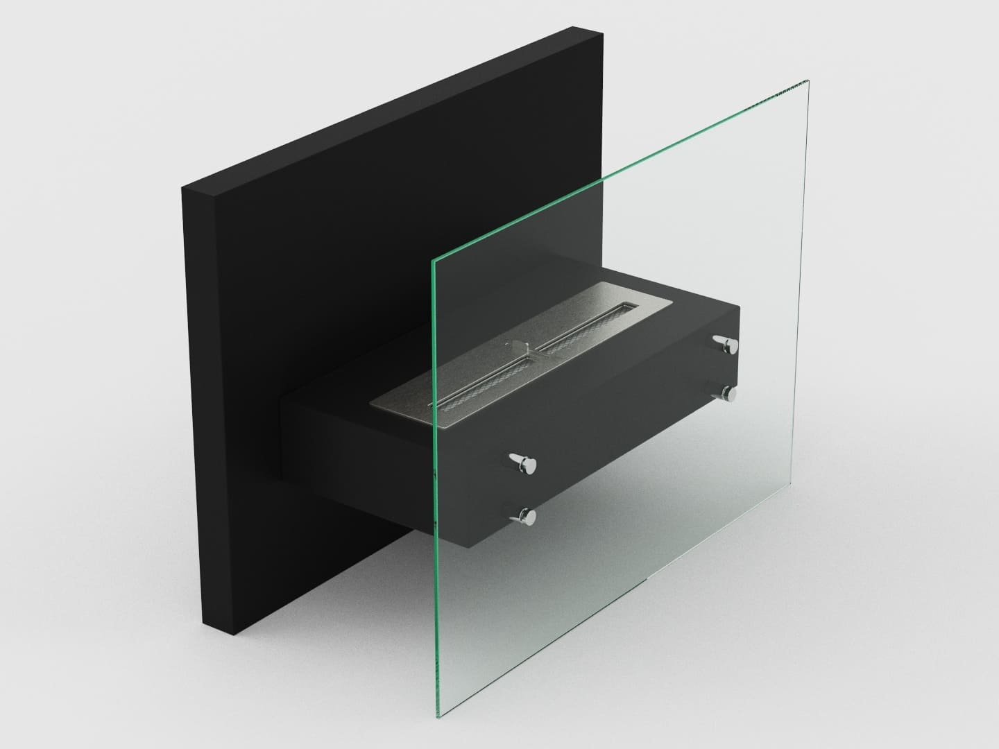 Корпус биокамина КОНСУЛ 2 - сборный металлический каркас (покрытый черной порошковой краской) с упором на заднюю металлическую стенку и на фронтальное защитное стекло.