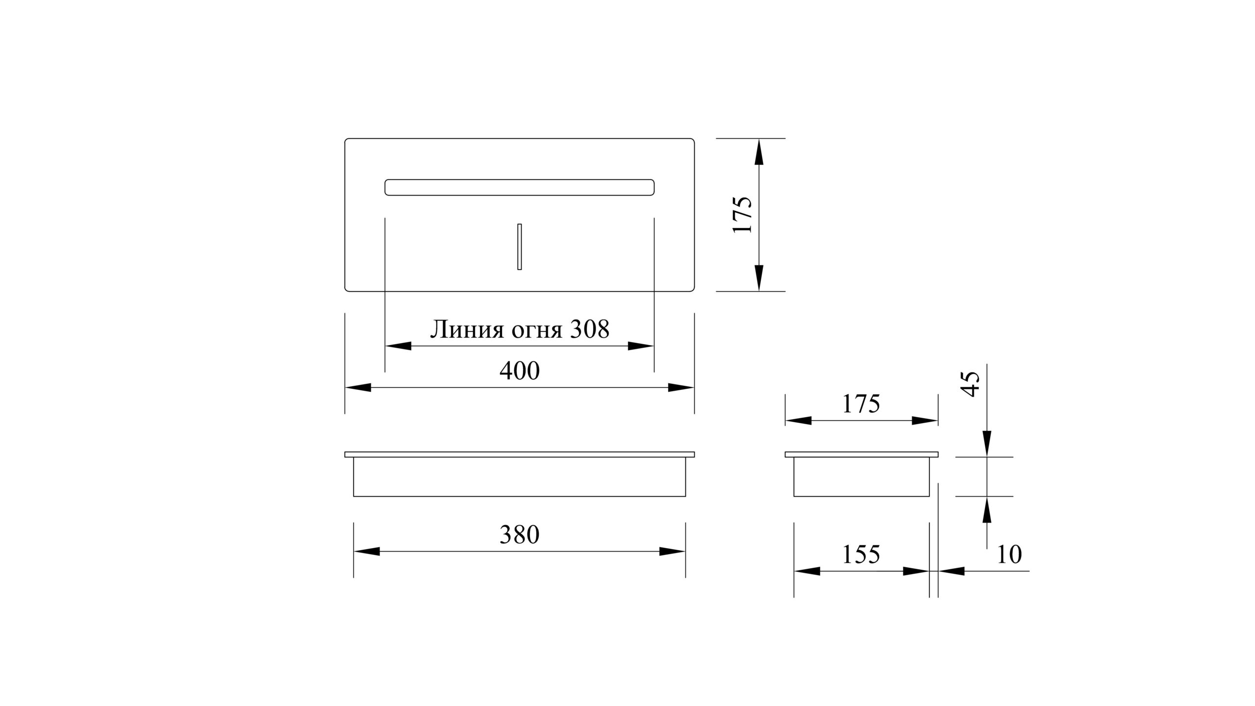 - Габаритный размер ДхШхВ (мм): 400х175х45;