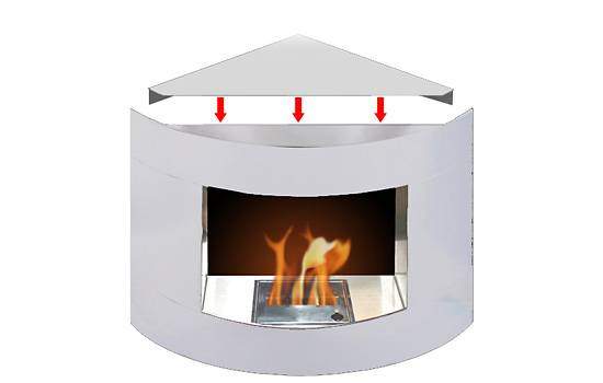 Очаг – это емкость куда заливается жидкое топливо. Емкость внутри заполняется керамическим материалом, который впитывает биотопливо, и в случае опрокидывания камина топливо не разливается. За счет этого конструкция стала полностью пожаробезопасной. Очаг встраивается в корпус из стали, который окрашивается специальной термостойкой краской, или же в заранее подготовленную нишу, изготовленную из негорючих материалов.
