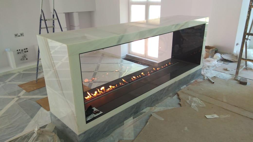 Встраиваемые варианты разделяются на такие как классические, устанавливаемые в подготовленное отверстие в стене или нише. Угловые, которые монтируются в угловую часть стены. Торцевые – открытые с трёх сторон. И сквозные, вид живого огня которых доступен в разных комнатах.