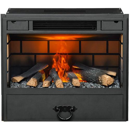 Внутренние стенки очага оформлены вставкой, имитирующей крупную кирпичную кладку. Также внутрь встроен керамический муляж дров разного размера и углей. Окраска муляжа обеспечивает их максимальную реалистичность. Используемая подсветка муляжа позволяет достичь эффекта мерцания дров в процессе работы очага.