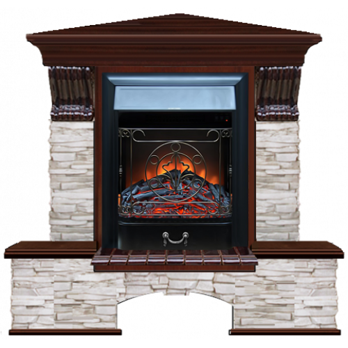 Каминокомплект Glenrich Бостон К Мисхор угловой (красное дерево)+Majestic Black