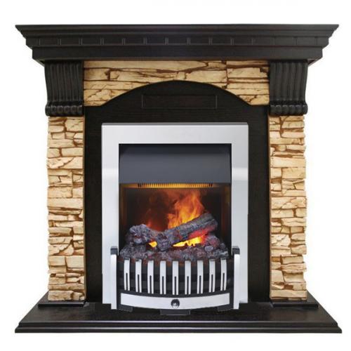 Основа портала каминокомплекта выполнена из искусственного камня. Этот материал представляет собой смесь натуральной каменной крошки и полимеров, в состав которых введены красители. Именно за счет своего состава искусственный камень имитирует натуральную скальную породу, в том числе и ее фактуру. При высокой прочности, как и у настоящего камня, этот материал характеризуется относительно невысоким весом. Если планируется установка электрокамина на верхних этажах, где требования к нагрузке на перекрытия строгие, эта характеристика материала довольно критична.
