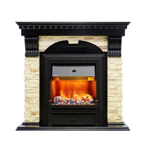 Портал, входящий в состав комплекта, визуально похож на старинные очаги, которые устанавливали в деревенских домах. Поэтому наиболее актуальна его установка в классических помещениях и в интерьерах, оформленных в стиле кантри. Стенки портала сверху в передней части оформлены изогнутыми резными консолями. Они не только обеспечивают красоту изделия, но и визуально поддерживают выступающую вперед каминную крышку. Она также покрыта геометрическим фризом. В зоне очага имеется декоративная арочная вставка. Законченный же вид конструкции придает плоское широкое основание.