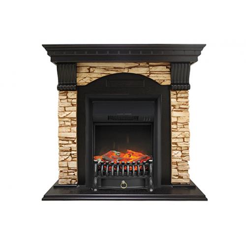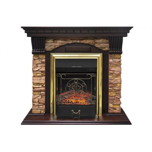 Каминокомплект Royal Flame Dublin угловой арочный скальный (темный дуб)+Majestic FX Brass