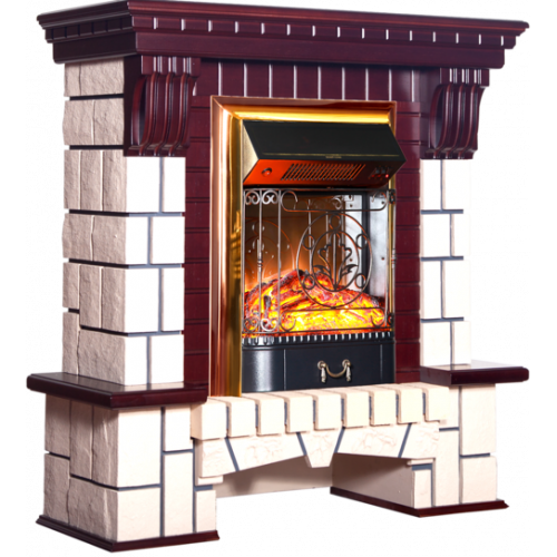 Каминокомплект InterFlame Экстер М Классика (махагон)+Majestic Brass