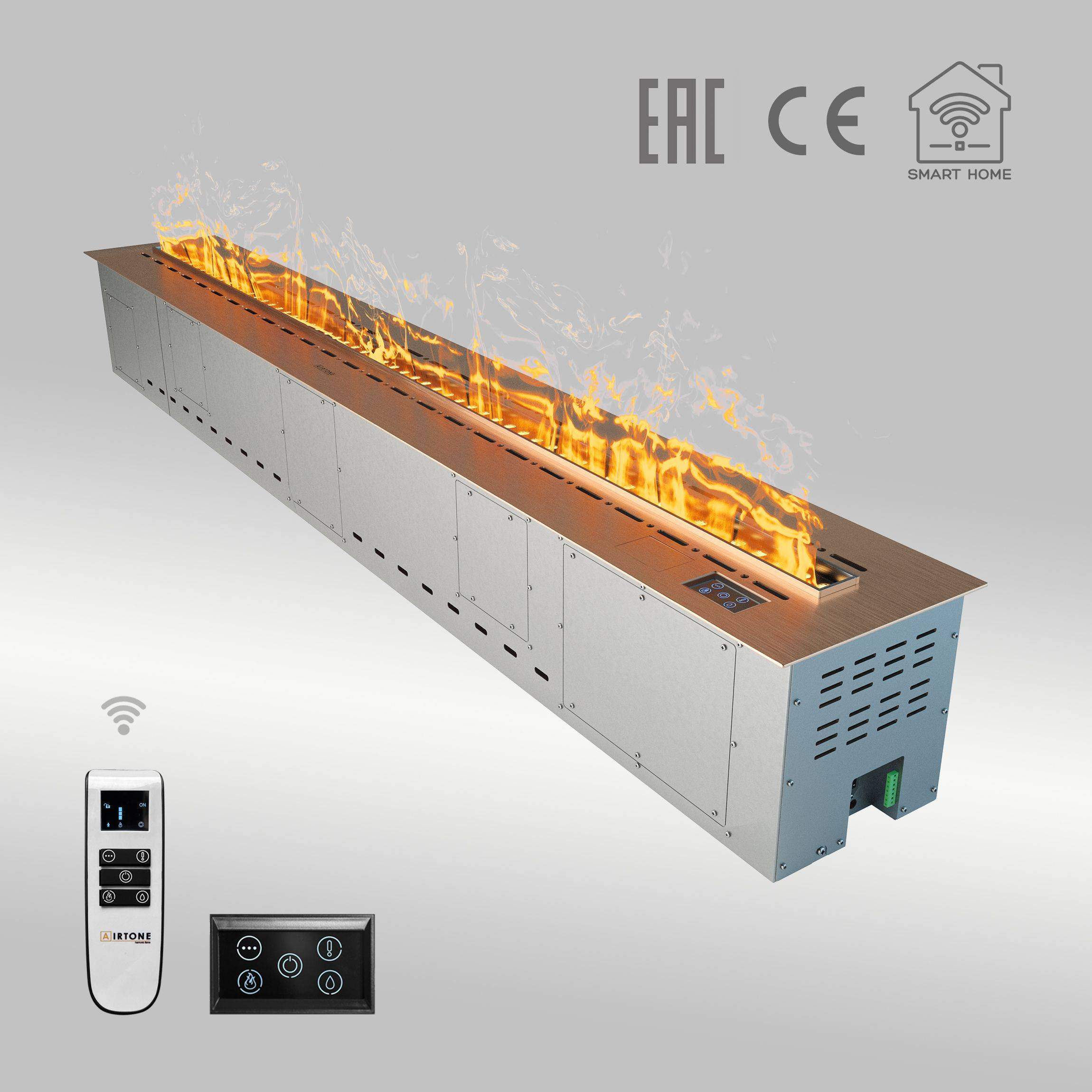 - Управление: Сенсорный экран на камине, пульт ДУ или система "Умный дом".