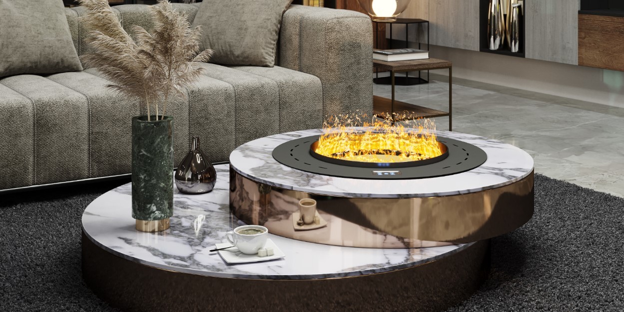 Создание «пламени» в них достигается за счет применения ультразвукового парогенератора. Микроскопические капли воды (туман), которые образуются, равномерно рассеиваются встроенным вентилятором. Получившееся облако особым образом подсвечивается разноцветными галогеновыми или светодиодными лампочками. Получившееся «пламя», в сочетании с очень достоверным «дымом» вырывается из искусственных поленьев. Иногда эта картина гармонично дополняется переливами и свечением искусственного угля. Выглядит такой очаг очень реалистично.