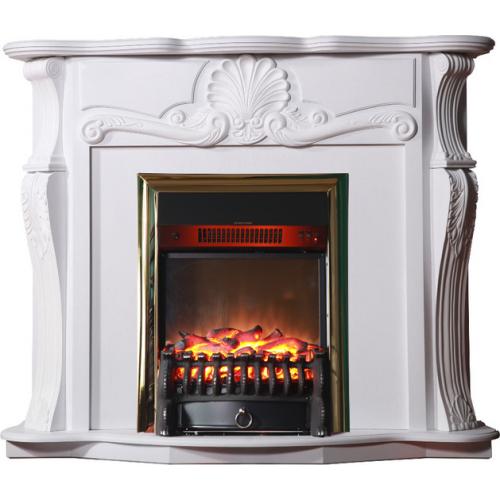 Каминокомплект InterFlame Грация (белый)+Fobos Brass