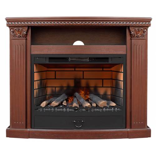 Каминокомплект «Ludovik», в портал которого встроен широкоформатный паровой очаг «3D Fog 34», точно займет центральное место в интерьере, выполненном в классическом стиле. В качестве основы для портала взят современный материал МДФ, который по техническим характеристикам близок к натуральной древесине, но обладает более высокой устойчивостью к перепадам температуры и влажности. Плотность материала достаточно велика для обеспечения оптимальной жесткости всей конструкции. При этом вес ее, по сравнению с настоящими дровяными каминами, относительно небольшой. Поэтому установить такой каминокомплект вы сможете в квартире многоэтажного дома, не проводя дополнительных монтажных работ. Сверху портал покрыт натуральным шпоном, который имитирует благородный цвет и текстуру вишни.