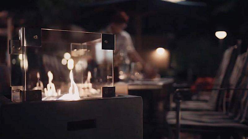 Очаг стола камина заполняется лавовыми или стеклянными камнями и Ваш уличный стол камин готов к использованию.