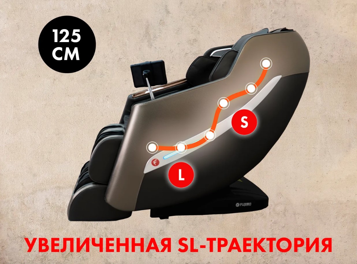 Массажная SL-траектория длиной 125 см обеспечивает полный охват Вашего тела от шеи до колен и полноценный профессиональный массаж.