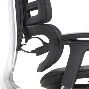 Спинка кресла выполнена в уникальной форме «динамической волны» и разделена на три зоны поддержки для оптимального распределения нагрузки. Каждая зона разработана с учетом эргономики: поясничный отдел получает дополнительную поддержку благодаря эластичному валику, который автоматически регулирует угол наклона в зависимости от положения пользователя.