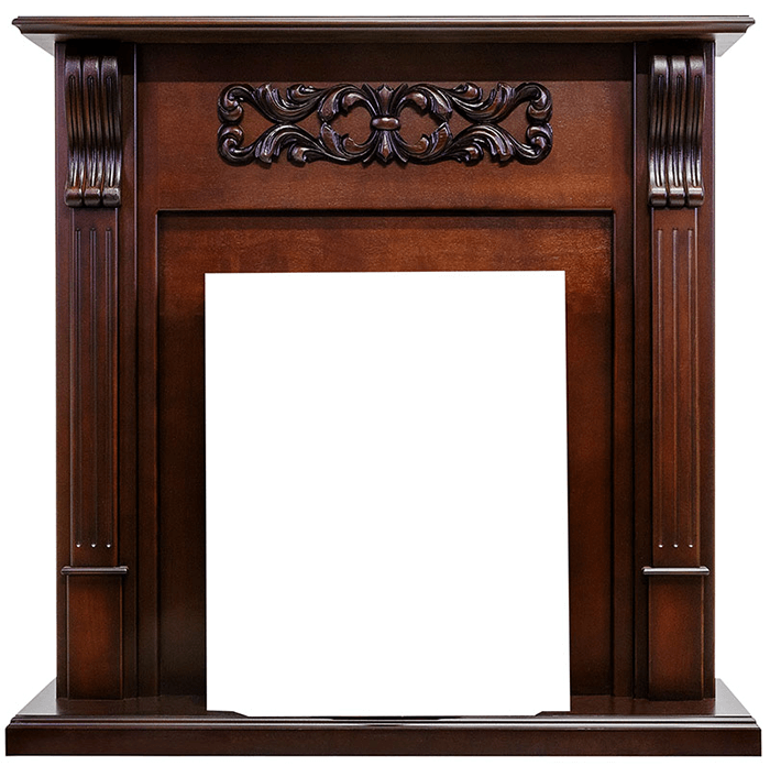 Художественное оформление этого портала навеяно образом Венеции – знаменитого города на воде с множеством архитектурных памятников. Корпус изделия выполнен из МДФ с отделкой натуральным шпоном. Для тонировки выбран цвет «темный махагон антик». Фронтальную сторону портала украшают пилястры с линейным декором и капителями, а также резной орнаментальный мотив, расположенный над проемом для очага.