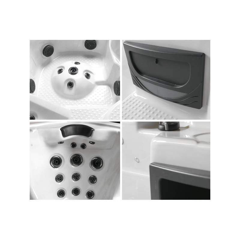 На сегодняшний день спа-бассейн с гидромассажем представляет собой акриловую чашу усиленную несколькими слоями композитного материала. Чаша изготавливается с несколькими сидячими и лежачими местами, в дизайнерском стиле и множеством вариантов расцветки. При изготовлении в нее встраиваются гидромассажные форсунки, которых в современном исполнении насчитывается множество типов.