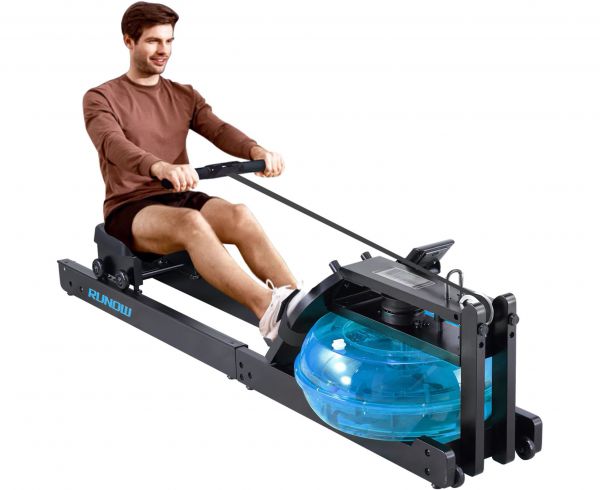 Гребной тренажер DFC Runow 6204B выполнен в чёрном цвете и предназначен для пользователей весом до 125 килограмм. Тренажер компактен и может быть установлен вертикально у стены.